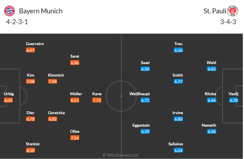 Bayern sẽ tiếp đón St Pauli trên sân nhà với mục tiêu giành chiến thắng để giữ khoảng cách điểm số với Leverkusen. Đây không phải trận đấu khó khăn bởi đội khách yếu hơn họ rất nhiều.