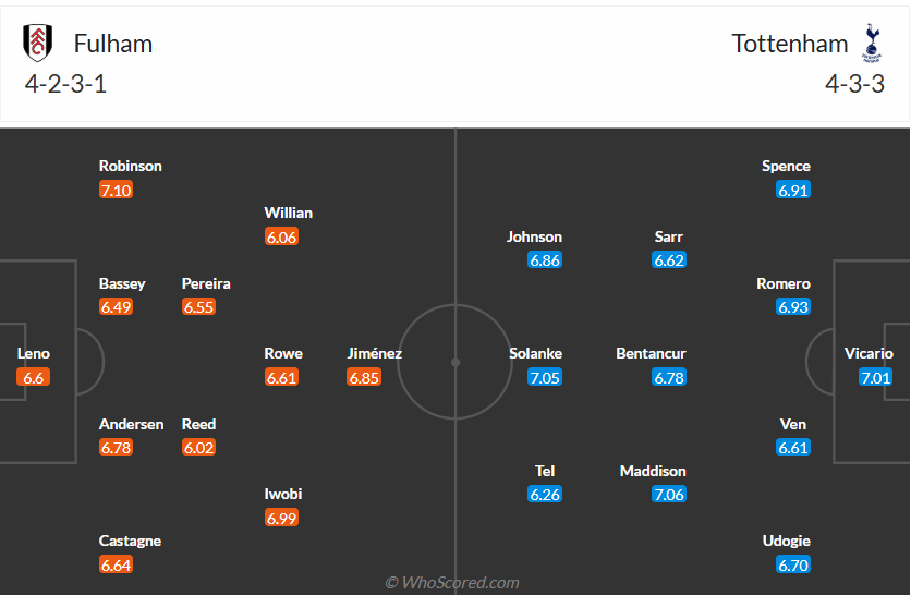 Tottenham đang có mùa giải vô cùng tệ hại, họ hiện đang đứng thứ 13 trên bảng xếp hạng. Nguy cơ xuống hạng có thể không còn nhưng đội bóng của HLV Ange Postecoglu sẽ chẳng thể hy vọng vào chiếc vé dự cup Châu Âu từ vị trí của mình khi mới có 34 điểm. Sau chuỗi 3 chiến thắng liên tiếp thì Tottenham lại chỉ có 1 điểm ở 2 vòng đấu gần nhất. Cộng với viêc vừa phải đá ở Europa League thì nhiều khả năng Tottenham sẽ gặp nhiều khó khăn khi đến làm khách trên sân của đội bóng rất khó chịu như Fulham, nhiều khả năng họ sẽ phải nhận thêm một trận thua nữa.