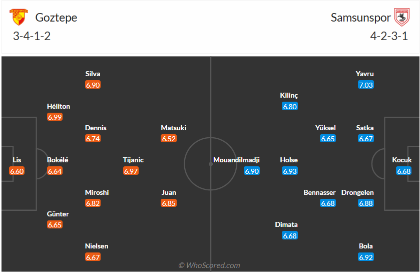 Samsunspor chỉ đứng thứ 13 mùa trước và họ không được đánh giá cao khi mùa giải bắt đầu. Tuy nhiên đội bóng của HLV Thomas Reis đã khiến tất cả bất ngờ với vị trí thứ 3 khi mùa giải đi vào giai đoạn cuối. Trong các trận đấu còn lại các cầu thủ Samsunspor sẽ làm hết sức mình để giữ vị trí hiện họ bởi 2 đội đầu bảng đã vượt họ khá xa. Muốn vậy thì Samsunspor không được để thua ở vòng đấu thứ 25 này khi làm khách trên sân của Goztepe, trước đội chủ nhà đang không có phong độ không tốt thì nhiều khả năng Samsunspor sẽ có điểm ra về.