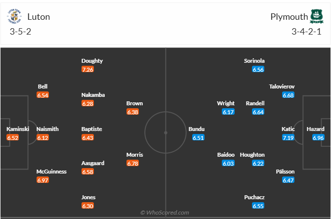 Luton đang đứng cuối bảng với 27 điểm, họ kém 1 điểm so với Plymouth, phong độ tệ hại với 4 thua, 2 hòa trong 6 vòng gần nhất là nguyên nhân khiến đội bóng này không thể cải thiện thứ hạng của mình. Đội bóng của HLV Rob Edwards cần nhanh chóng chơi tốt hơn nếu không muốn xuống hạng vào cuối mùa. Trận đấu gặp đối thủ cạnh tranh trực tiếp Plymouth là cơ hội không thể tốt hơn để Luton tìm kiếm chiến thắng. Với lợi thế sân nhà thì nhiều khả năng Luton sẽ có được điều mình cần.