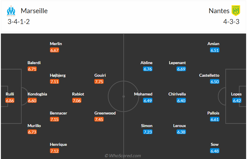 Marseille đang đứng thứ 2 trên bảng xếp hạng, thành tích rất ấn tượng của thầy trò HLV Roberto De Zerbi sau khi chỉ đứng thứ 8 mùa giải trước. Rõ ràng HLV người Italia đã giúp đội bóng này chơi tốt hơn rất nhiều và điều các cầu thủ Marseille cần làm trong phần còn lại của mùa giải đương nhiên làl giữ vị trí hiện tại của mình trước khi nghĩ tới bám đuổi đội đầu bảng. Họ cần chiến thắng ở vòng 24 này sau khi thua vòng trước, chỉ phải đối đầu với đội bóng yếu hơn khá nhiều như Nantes là cơ hội tốt để Marseilla có chiến thắng và nhiều khả năng đội chủ nhà sẽ có được điều mình cần.