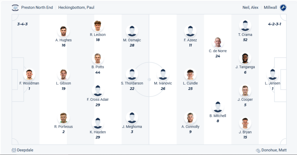 Preston đang đứng thứ 15 trên bảng xếp hạng, vị trí đi xuống so với những gì đội bóng này làm được mùa giải trước (thứ 10). Với vị trí như hiện tại thì có lẽ đội bóng của HLV Paul Heckingbottom chỉ có thể nghĩ đến một vị trí ở nửa trên bảng xếp hạng chứ mục tiêu thăng hạng đành phải hẹn mùa sau. Phong độ của các cầu thủ Preston gần đây tương đối tốt khi thắng 3/6 trận gần nhất và chỉ để thua 1 trận. Đây là điều giúp họ tự tin hơn ở vòng 33 này với mục tiêu giành chiến thắng, Millwall không phải đội bóng quá khó chơi và nhiều khả năng Preston sẽ tận dụng được các cơ hội có được để có 3 điểm trận này.
