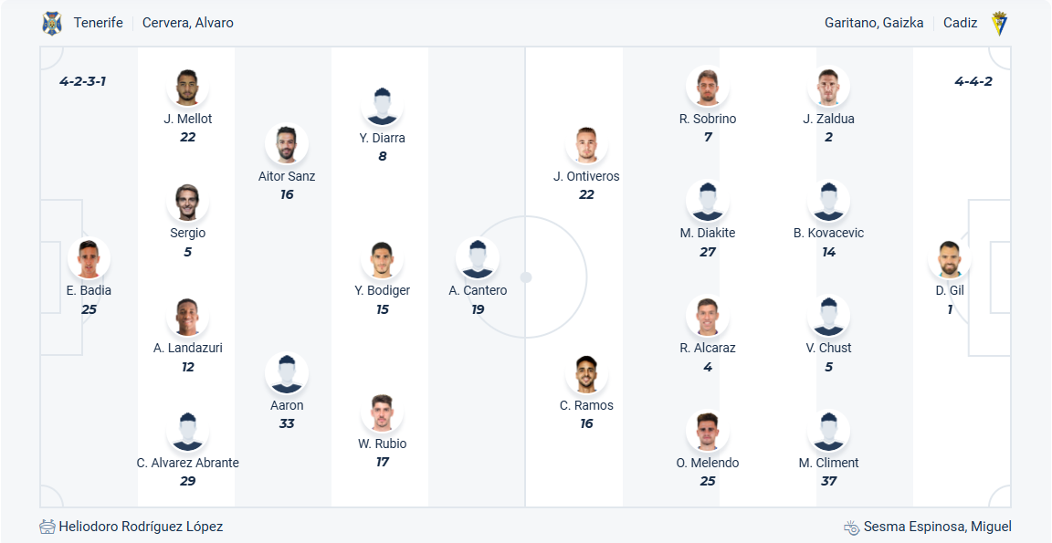 Tenerife đứng thứ 12 mùa giải trước, vị trí không đến nỗi nào dù chưa thể khiến các fan đội bóng này hài lòng. Tuy nhiên ở hiện tại thì các cổ động viên có lẽ chỉ mong được như mùa trước, việc đang đứng thứ 21 là thành tích vô cùng tệ hại và nếu không chơi tốt trong phần còn lại của mùa giải thì thậm chí đội bóng của HLV Álvaro Cervera sẽ còn phải xuống hạng. Chính vì vậy Tenerife rất cần 3 điểm ở vòng đấu thứ 32 này, tuy nhiên trước đối thu đang chơi tốt như Cadiz thì nhiều khả năng đội bóng chủ nhà sẽ phải nhận thêm một trận thua nữa.